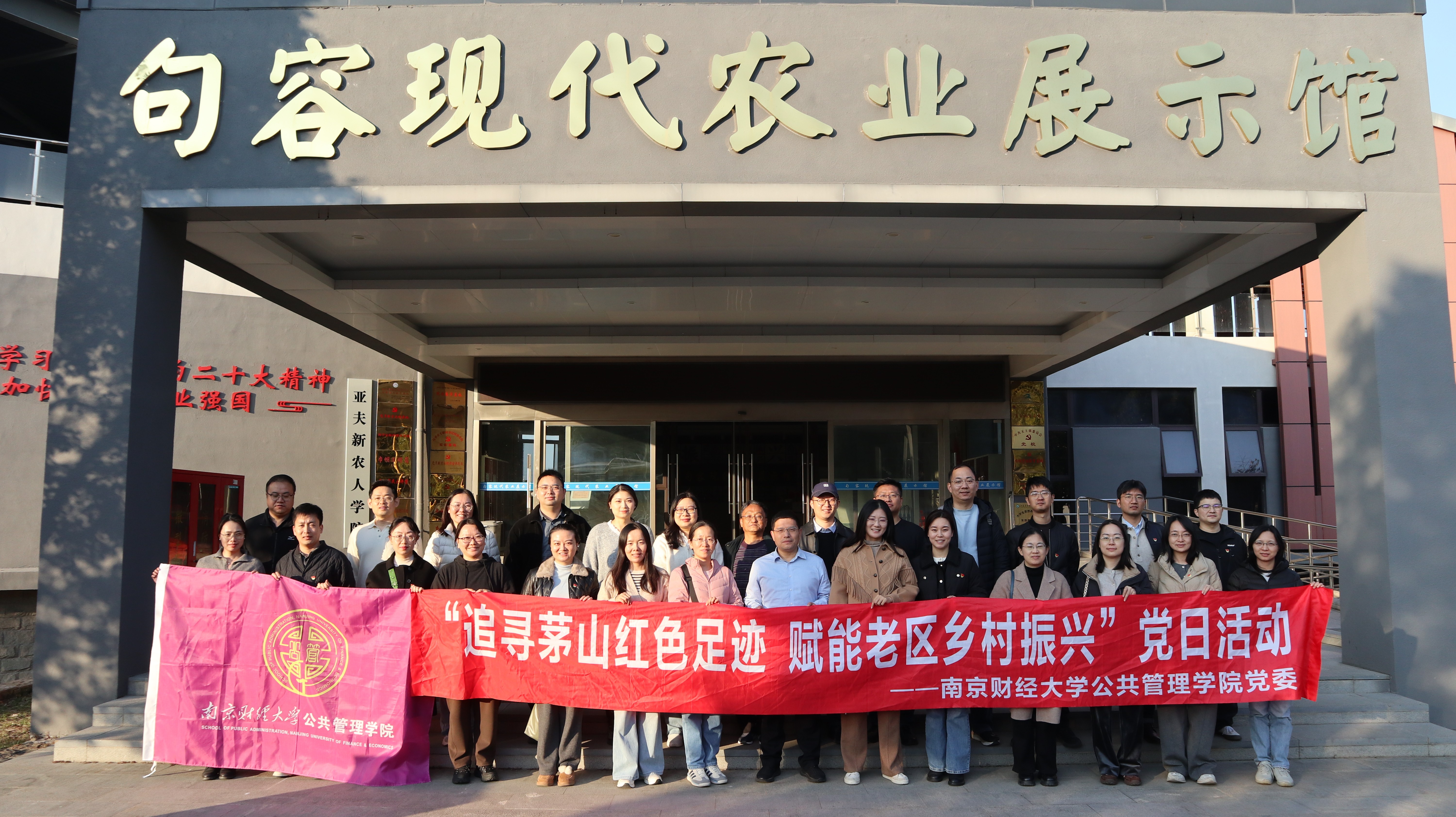 党委组织全院教师党员前往茅山革命老区与句容现代农业示范区,开展了“红色赋能·振兴同行”主题党日活动。活动通过“红色寻访”与“实地调研”相结合的方式,引导教师党员在历史与现实的交融中强化使命担当。