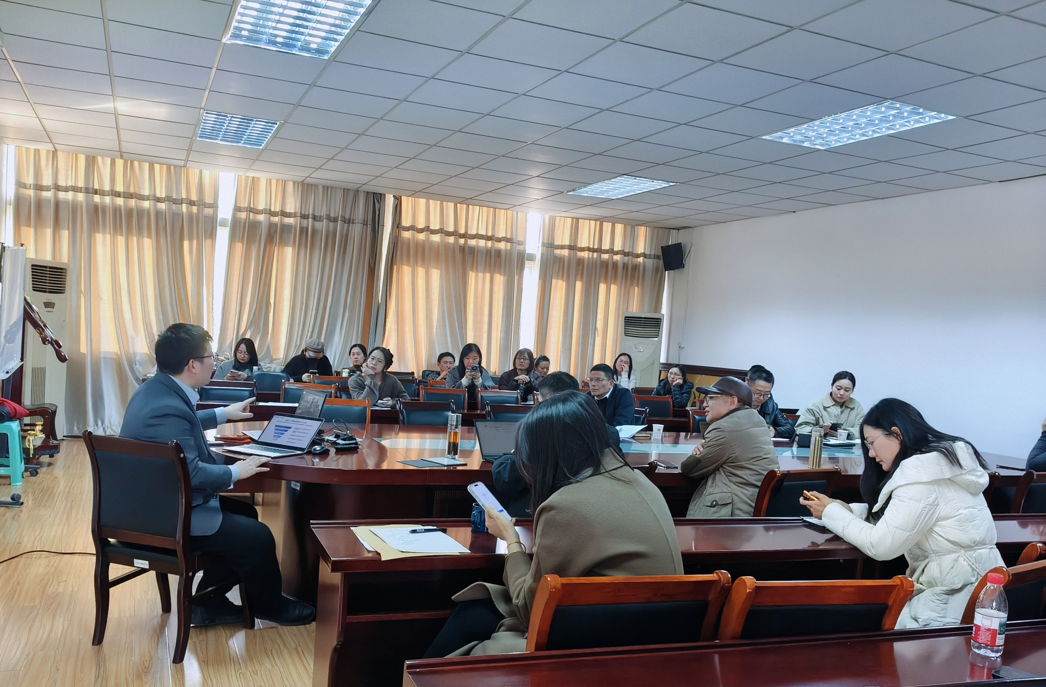 教师齐聚会议室,共同探讨人工智能时代高等教育的变革路径与发展机遇。